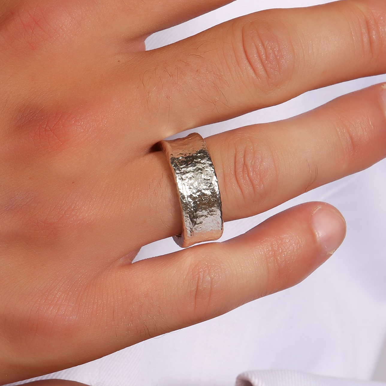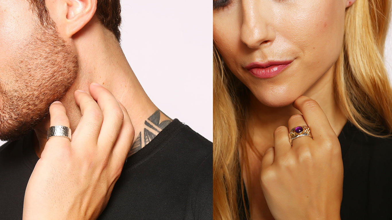 My signature designs are a combination of organic and handmade textures which are crafted using a variety of metals from silver and gold to platinum. See below for my bestelling silver bands set with semi-precious stones and the classic stacking rings which make the perfect gift.